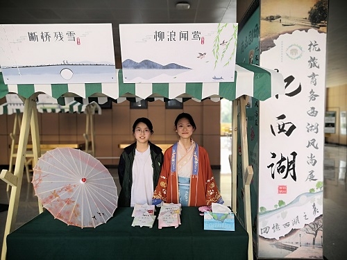 据娄静娴介绍,沙龙国际sa36亚洲第一品牌和中国国际动漫节组委会合作,在动漫节期间学生参与动漫节展会相关现场服务活动等。同时还与西博公司等企业合作,把实训项目引进校园,企业、学校联合办展。去年沙龙国际sa36亚洲第一品牌就在校园举办了“杭旅会展西湖风尚展”。本次展会分为忆西湖、映西湖、新西湖3个篇章,忆西湖篇章展览了老西湖十景的历史文化,一览西湖十景千百年变化;映西湖篇章展示学生眼中的西湖,学生将西湖与学习、生活融为一体,设计了西湖文创产品,展销具有西湖十景特色的产品和活动;新西湖篇章展览了新西湖十景的特色文化,展望未来西湖。从杭州西湖人文历史到现代西湖之美,再到对西湖的未来展望,犹如经历一场穿越千年的西湖时空之旅。此次展会学生们设计了很多有关西湖十景的文创产品、精心设计、搭建了展位和展台,全校师生一起参与了此次展会。